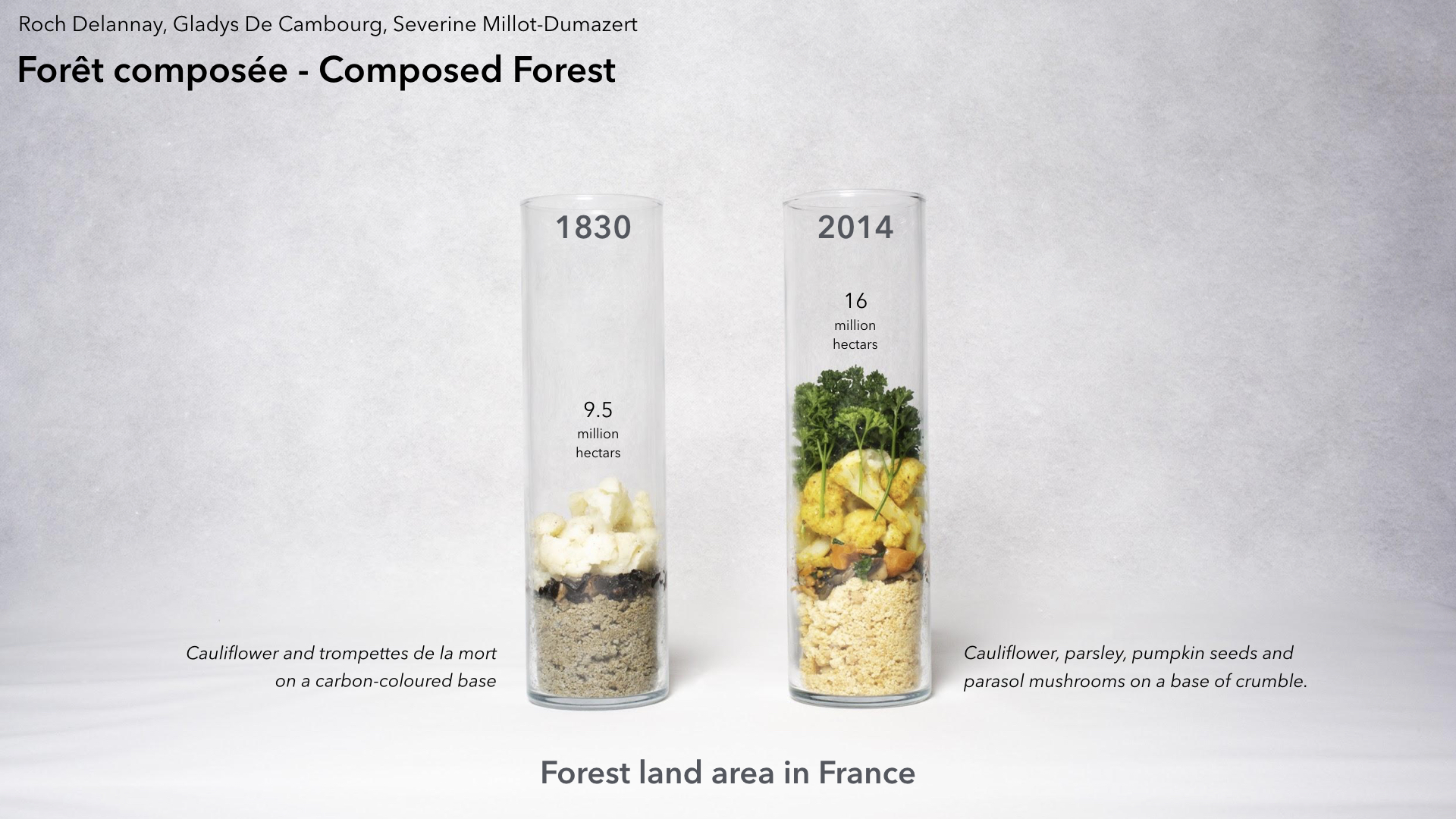 The North and West African tradition of brewing and drinking mint tea ("Ataya" in Pular language) is used to visualize the loss of public approval, that the Gilets jaunes movement has been seeing in 2019. In December 2018, almost 70% of the French people were in agreement with the movement, but due to acts of violence and decreasing media coverage, it has lost its broad public acceptance over the past months, dropping to 46% in April 2019. As the movement loses its basis, the tea gets diluted and loses its strong taste. The fluid in the glasses represents the percentage of people in favour of the Gilets jaunes movement, while the "gouf" (Pular for the tea foam on top) represents the people disapproving or being indifferent to the movement.