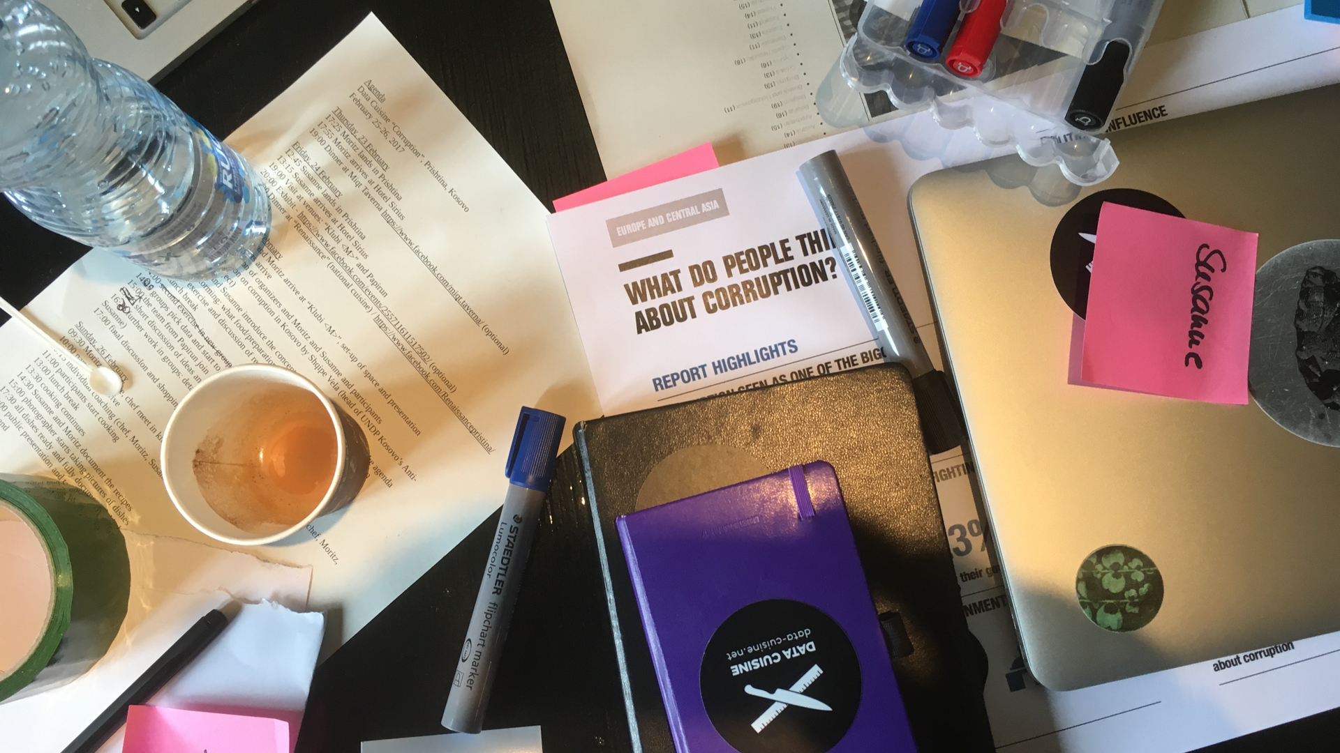 In February 2017, Data Cuisine took place in Pristina, Kosovo. The UNDP had invited us to explore data on corruption in Kosovo together with eight workshop participants. Corruption is one of the biggest problems in Kosovo. The UNDP tries to fight corruption through empowering citizens and access to information.